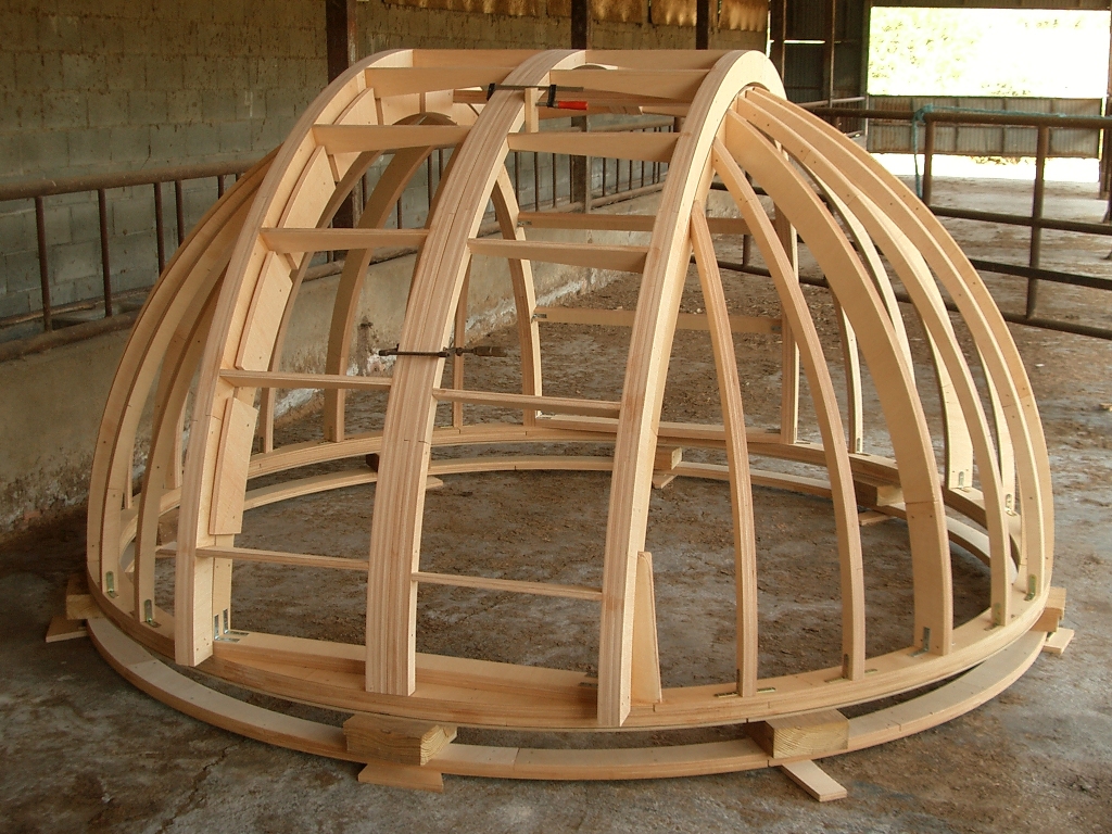 La cúpula que em vaig fabricar té un cos de fusta de clavó de 20 mm de gruix. Està revestida amb planxa de DM de 5 mm i tres capes de fibra de vidre i resina epoxi. La pintura exterior és també epoxi, de la que s'utilitza per pintar vaixells. Les comportes són de tipus "palomar" i deixen una obertura de 1 metre. Tota la cúpula se suporta sobre de vuit rodes que a l'hora s'acoblen a un anell de ferro de 25 mm.
